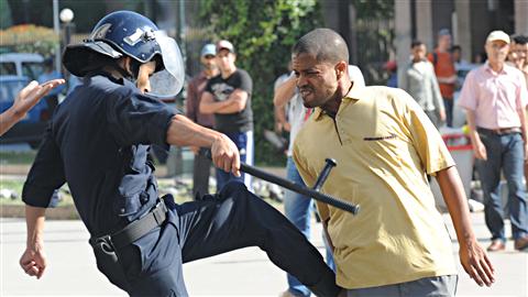 Armés de matraques, les agents de l'escouade antiémeute s'en sont pris à tout ce qui ressemblait à un rassemblement de protestataires, en blessant certains et en traînant d'autres jusqu'à des fourgons de police.